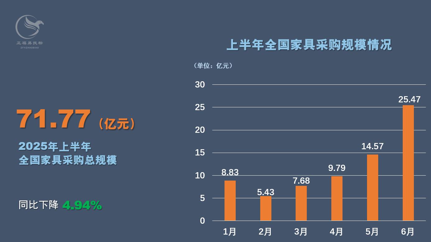 正福易找标大数据显示,2025年上半年,全国家具采购市场表现如何?涌现哪些大项目?哪些供应商活跃在家具采购市场,中标、成交哪些大项目?