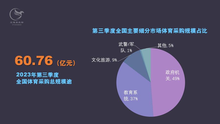 第三季度作为全国体育市场依然备受关注,各地体育赛事活动陆续开展,教育系统体育采购进入旺季,与去年同期相比,今年第三季度全国体育采购有哪些新的变动?采购规模有何变化?大项目有多少?活跃了哪些供应商?政府采购信息报记者根据正福易找标大数据进行统计分析,供行业参考。详情》