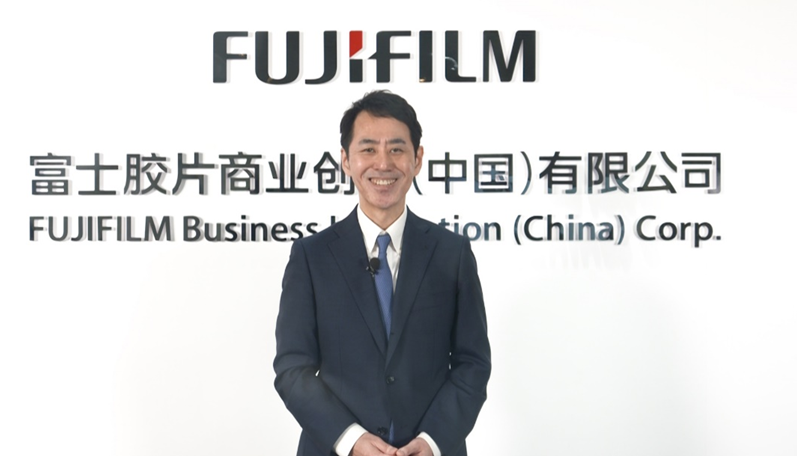 富士胶片商业创新(中国)有限公司董事长内藤昌继为新公司名称揭幕