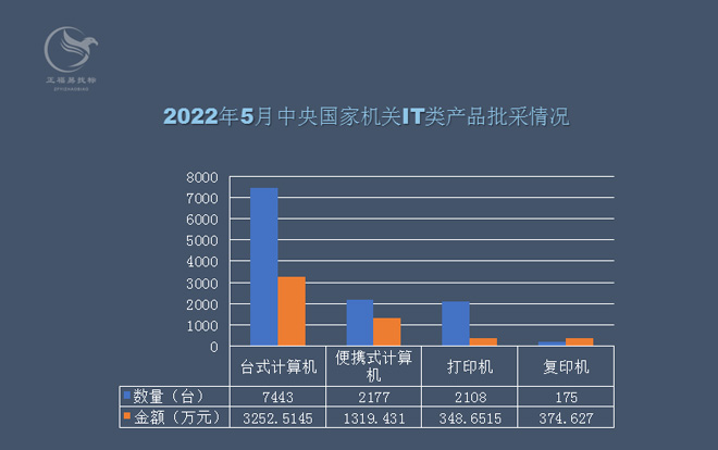 2022年5月中央国家机关IT类产品批采额5295万