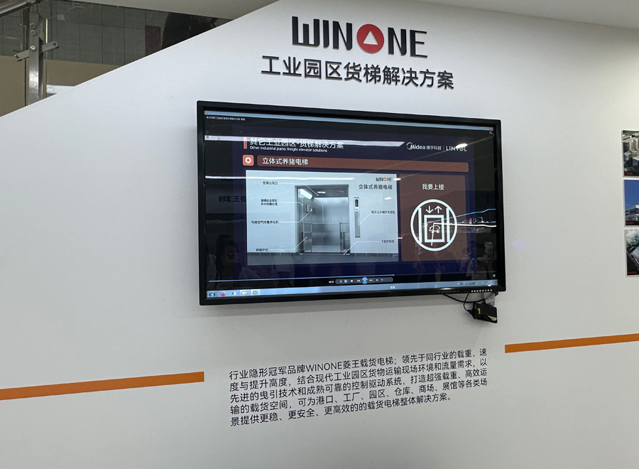 梁家彬介绍说:“工业园区的货梯采购量极大,我们带来的工业园区货梯解决方案有几个亮点,如AGV自动搬运机器人与电梯自动运行对接、摄像头自动识别车牌,还带来了50吨超大载重货梯曳引主机,滚动导靴降低震动峰值,160千瓦动力稳定高效。在家用部分带来了类平台和钢带别墅,支持个性化设计。展会还带来了iBuilding智慧楼宇管理平台,提供楼宇数智化楼宇整体解决方案。”