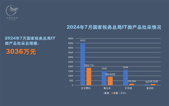 2024年7月国家税务总局IT类产品批采额3036万元
