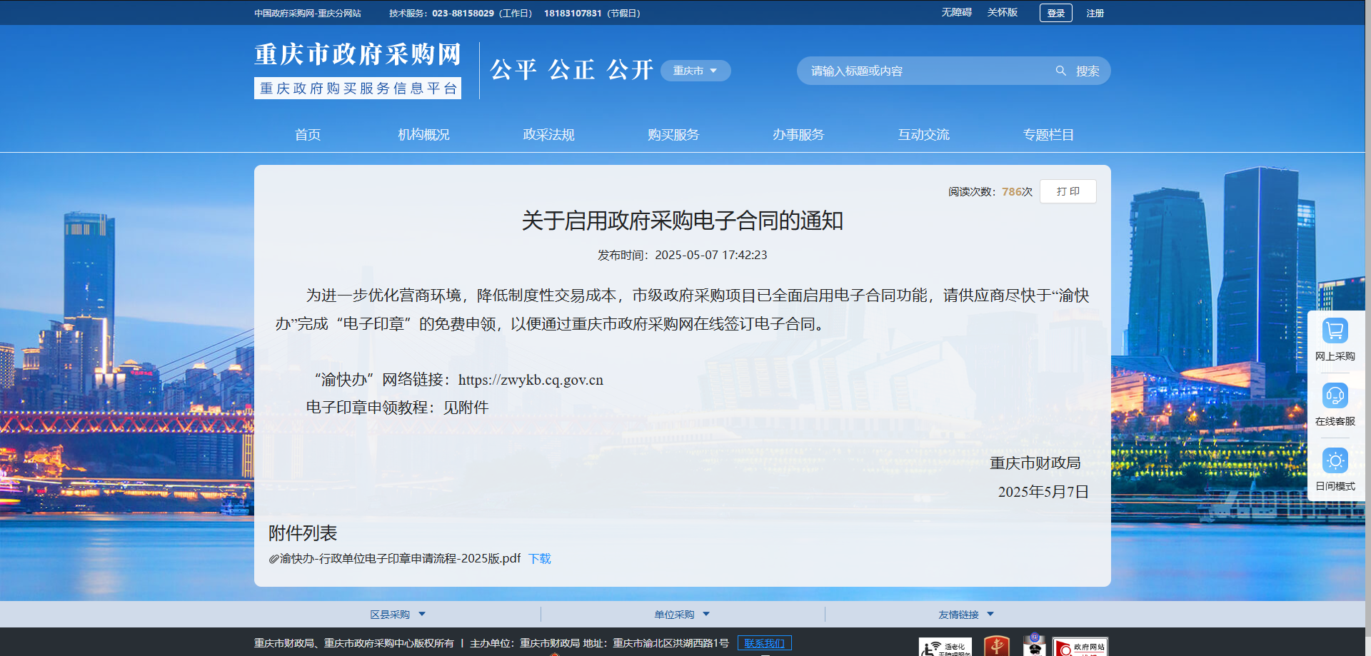 重庆:政府采购全面启用电子合同功能